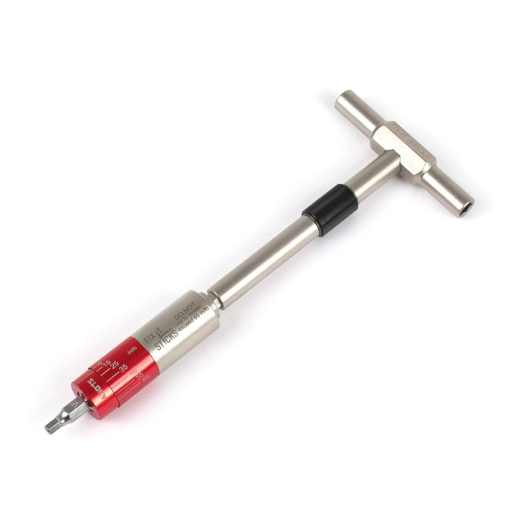 De Fix It Sticks All-in-One Torque Driver Kit bevat een momentsleutel waarmee bouten en schroeven kunnen worden vastgedraaid met een specifiek koppel tussen 15-65 inch-pounds. De set bevat ook een T-handgreepsleutel voor extra hefboomwerking, evenals een 1/2-inch dop en een 1/4-inch bitadapterset. Daarnaast worden 15 verschillende bits meegeleverd, speciaal gekozen om te passen op de meeste actie-schroeven en optiekmontages op de markt.