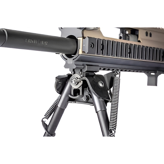 Dankzij het geïntegreerde kantelmechanisme biedt deze bipod uitzonderlijke flexibiliteit. Het stelt u in staat om aanpassingen te maken en te compenseren op ruig of ongelijk terrein, zodat uw schietpositie altijd stabiel blijft.