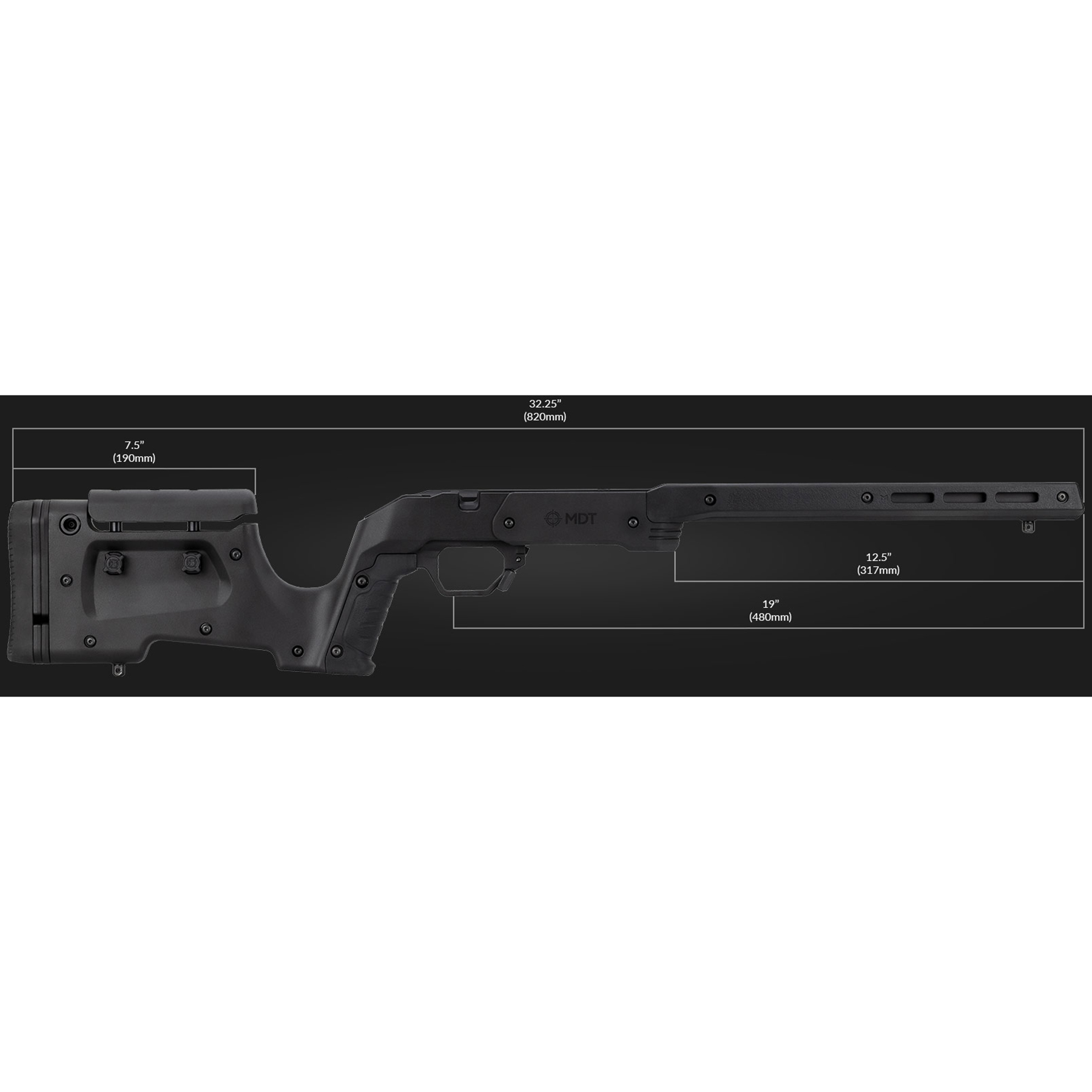 Of je nu een wedstrijdschutter bent of een fanatieke jager, het MDT XRS Chassis biedt de precisie en betrouwbaarheid die je nodig hebt.
